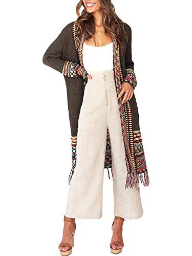 More information about Misassy Womens Boho Open Front Long Cardigans Sweater Loose Long Sleeve Embroidery Tassels Kimono Duster Outwear