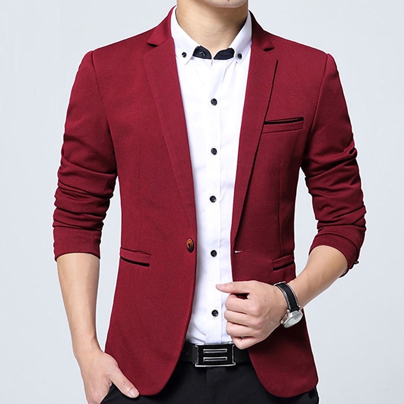More information about Men's Graduation Jacket Blazer Wedding Business Warm Breathable Pocket Classic Spring Fall Color Block Business Casual Turndown Thick Regular Regular Fit Light Blue Black Wine Navy Blue Khaki Jacket