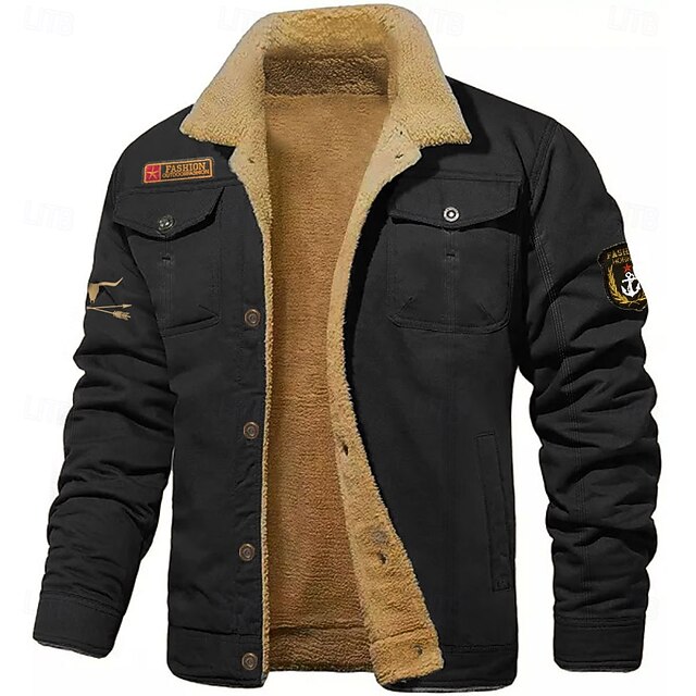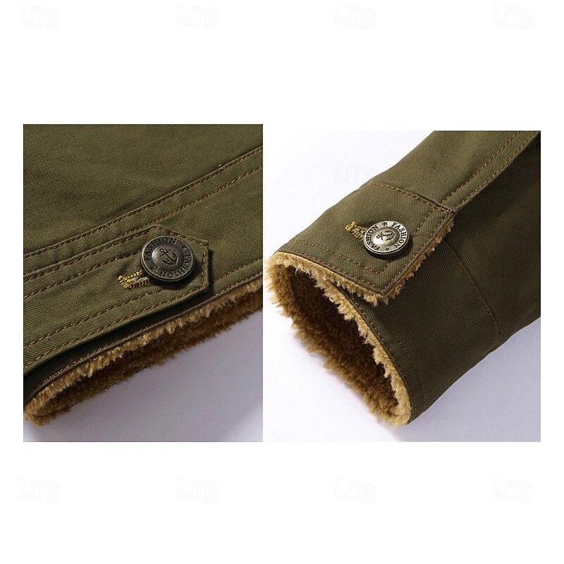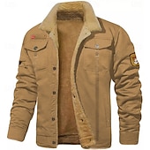 More information about Men's Embroidered Fleece Jacket Cargo Jacket Cow Print Turndown Collar Long Sleeve Military Tactical Jacket Vintage Thermal Warm Winter Outwear Multiple Pockets Button Front Cotton Coat