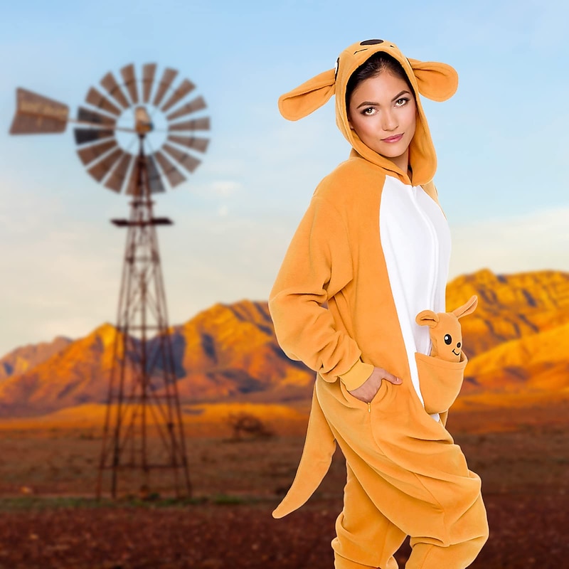 Highlights [Fabric] : Made from high-quality flannel, this cozy onesie offers a soft and plush feel, ensuring warmth and comfort throughout the day. The micro-elastic nature of the material allows for flexibility and ease. [Fit] : Designed for a relaxed fit, the onesie provides ample room for movement, making it perfect for both lounging and playful activities. [Design Highlights] : The playful kangaroo theme is brought to life with a hood featuring ears and facial details, adding a whimsical touch. A front zipper allows for easy wear and removal, while the adorable pouch pocket with a small attached plush baby kangaroo enhances its charm. [Occasions] : Ideal for carnival celebrations, costume parties, or simply a fun night in, this cartoon onesie is perfect for adults looking to blend comfort with a humorous style during festive events. [Size Range] : Available in sizes S, M, L, and XL, ensuring a suitable fit for various body types across both men and women.