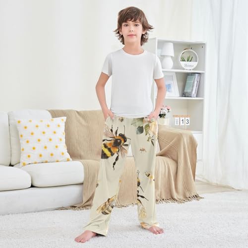Lovely Bee Floral Boys Long Pants Soft Trousers Elastic Waist Kids Lounge Bottoms with Pockets S-XL 6