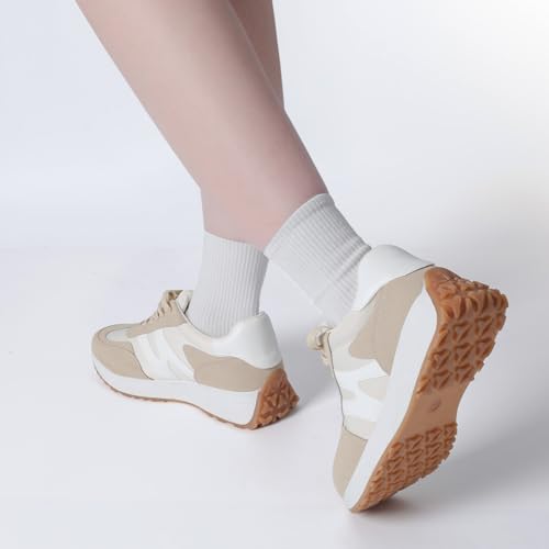 • 【Non-slip Pattern】: Flexible rubber outsole with sculpted slip-proof pattern on the outsole, our fashion sneakers for women ensure your safety and confidence on different surfaces.