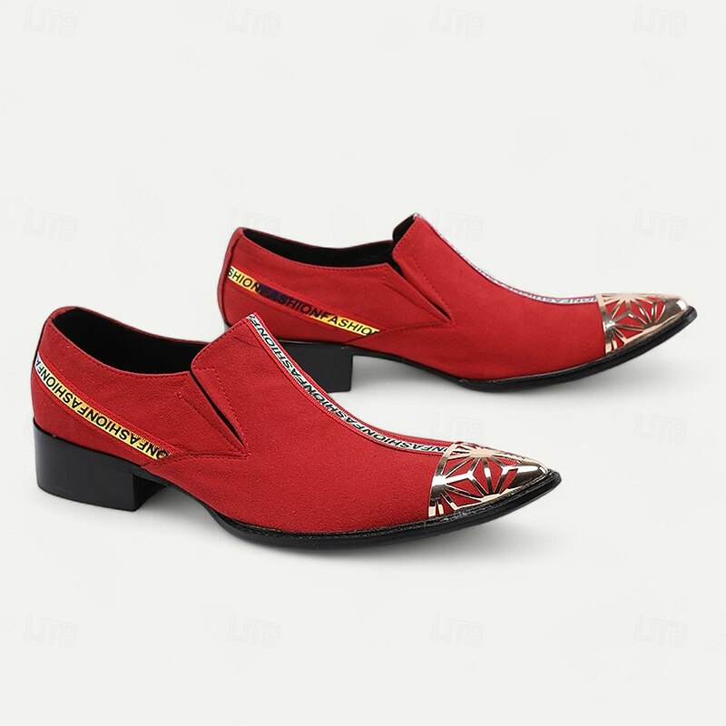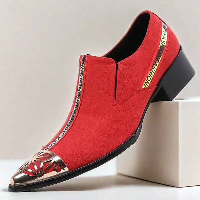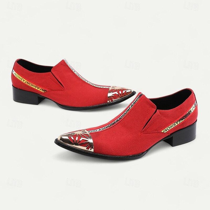 Men's Red Leather Suede Slip-On Shoes with Metal Toe Cap and Fashion Strap - Elegant Western Style for Formal Events and Parties 1