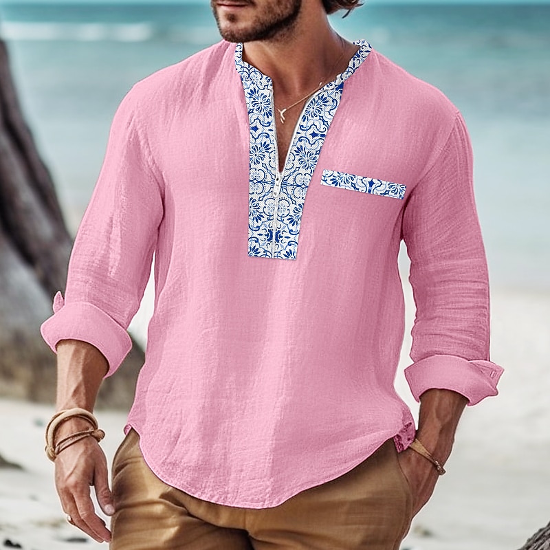 More information about Men's Shirt Casual Shirt Summer Shirt Beach Shirt White Pink Navy Blue Blue Gray Long Sleeve Patchwork Half Zip Daily Vacation Front Pocket Clothing Apparel Fashion Casual Comfortable