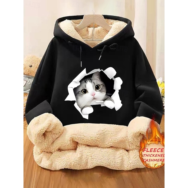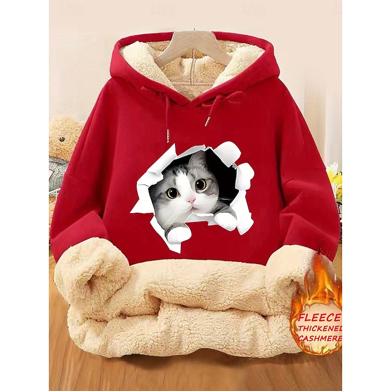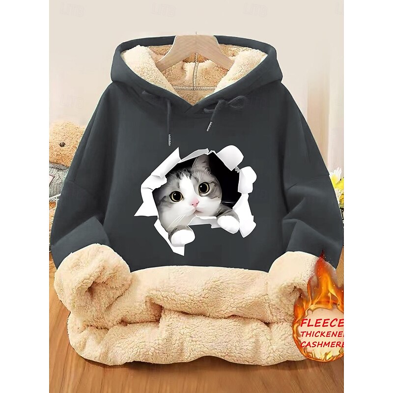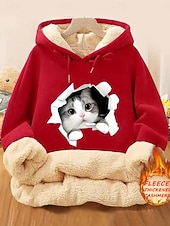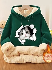 More information about Women's Pullover Hoodie Sweatshirt Graphic Animal Casual Comfrt Long Sleeve Hooded Regular Tops Street Dailywear Casual Pocket Print Black Pink Red Green Dark Gray Fall Winter