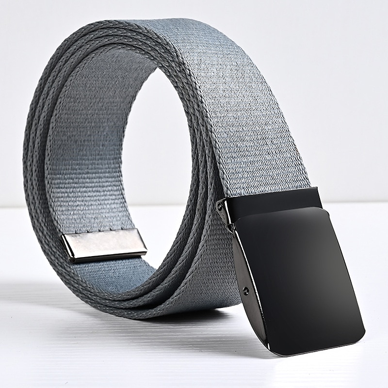 Highlights [Fabric] : Crafted from high-quality canvas, this men's tactical belt offers durability and flexibility, making it suitable for all-day wear. The tough woven fabric ensures a comfortable fit that blends style with practicality. [Style] : This canvas belt features a plain pattern and is designed to be both sleek and versatile, seamlessly transitioning between casual and formal looks. Its modern and sophisticated appearance enhances any outfit effortlessly. [Design Highlights] : The belt comes equipped with an automatic buckle, providing ease of use and a contemporary touch. The seamless, black buckle adds to the belt's modern style, ensuring a polished finish. [Occasions] : Perfect for daily wear, going out, and weekend activities. This belt is a versatile accessory, ideal for a variety of occasions, accentuating your style effortlessly whether you're dressing up or down. [Size Notice] : Available in one size with an adjustable length, this belt can be customized to fit most waist sizes comfortably, making it a functional and essential addition to any wardrobe.