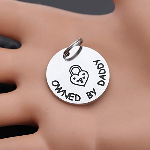 • Funny Couple Gift - Owned By Daddy.Comes with a split ring so you can attach it to a collar or necklace.
