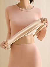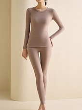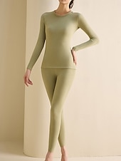 More information about Women's Thermal Underwear Pajama Set Casual Comfort Pure Color Elastic Waist Pant Home Daily Long Sleeve Crew Neck Black Pink Light Brown Brown Green Spring Fall Winter Tailored Fit
