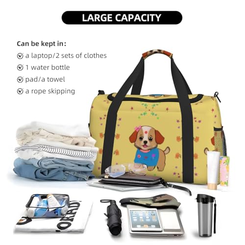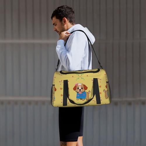 Adorable cartoon dog Printed fitness travel bag. Perfect for yoga training, short trips, and swimming gear. 1