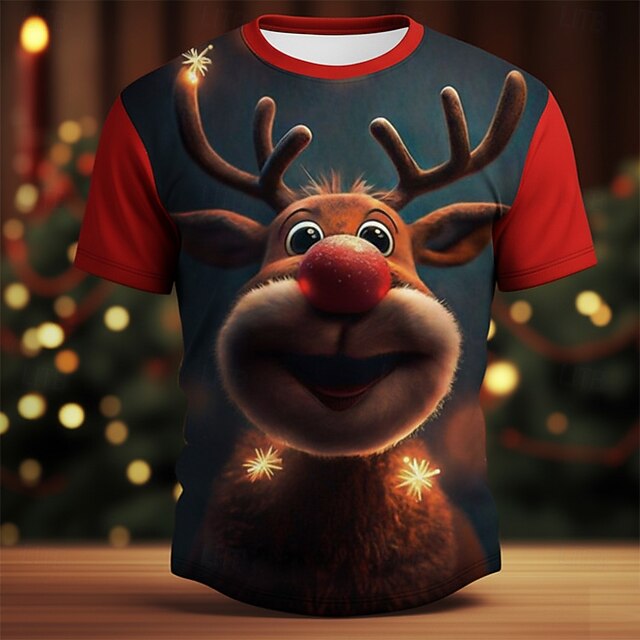 More information about Christmas Men's Elk T Shirt Short Sleeve T shirt 3D Print Crew Neck Shirt Daily Designer Artistic Vacation Party Street Red Red 2 All Seasons Clothing Apparel S M L XL XXL XXXL