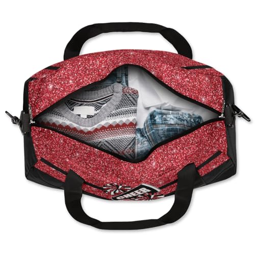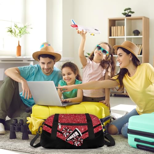 Cheerleading Kids Overnight Duffel Bags for Girls Red Glitter Sport Gym Bag Duffel Bag for Travel Weekender Practice Gymnastics Ballet School Gym Sleepover Bag 6