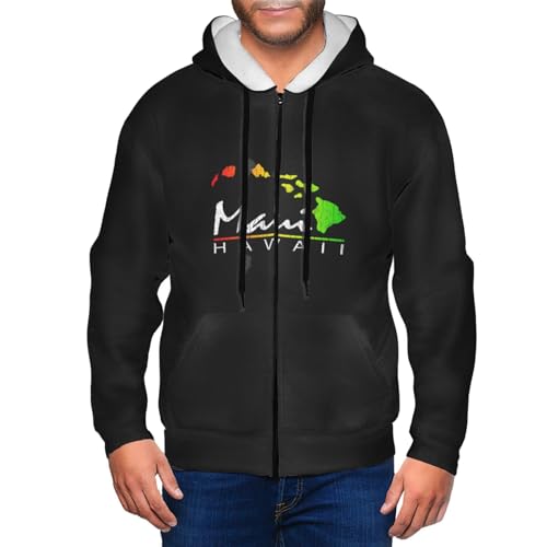 HOT ! Maui Hawaiian Islands Hoodies Men'S Hooded Sweatshirts With Pockets Casual Full-Zip Sweater Pullover