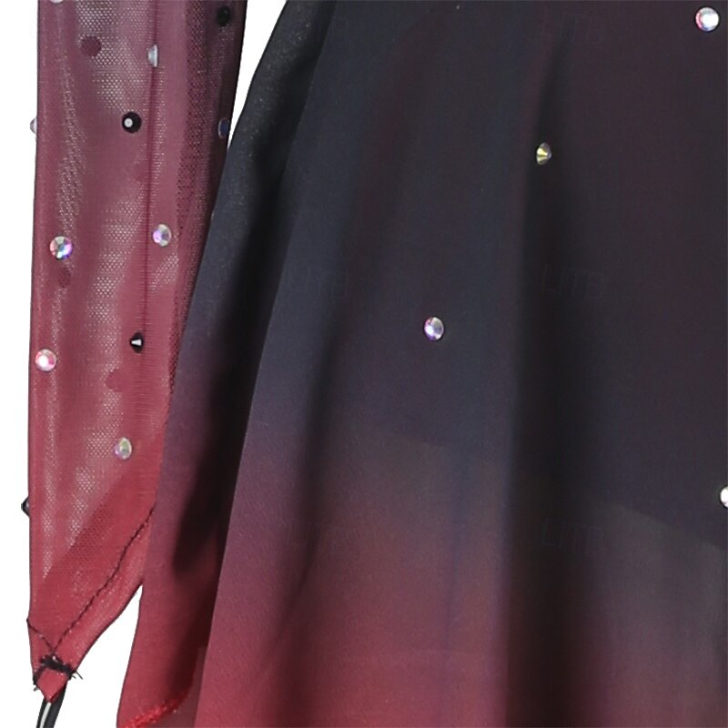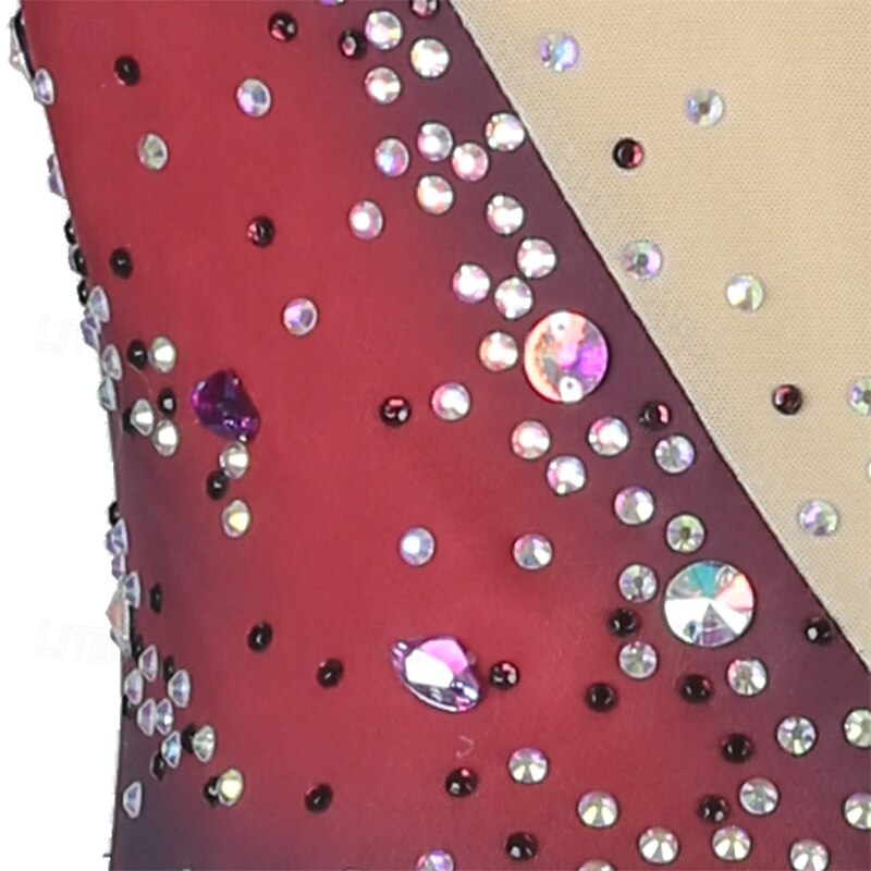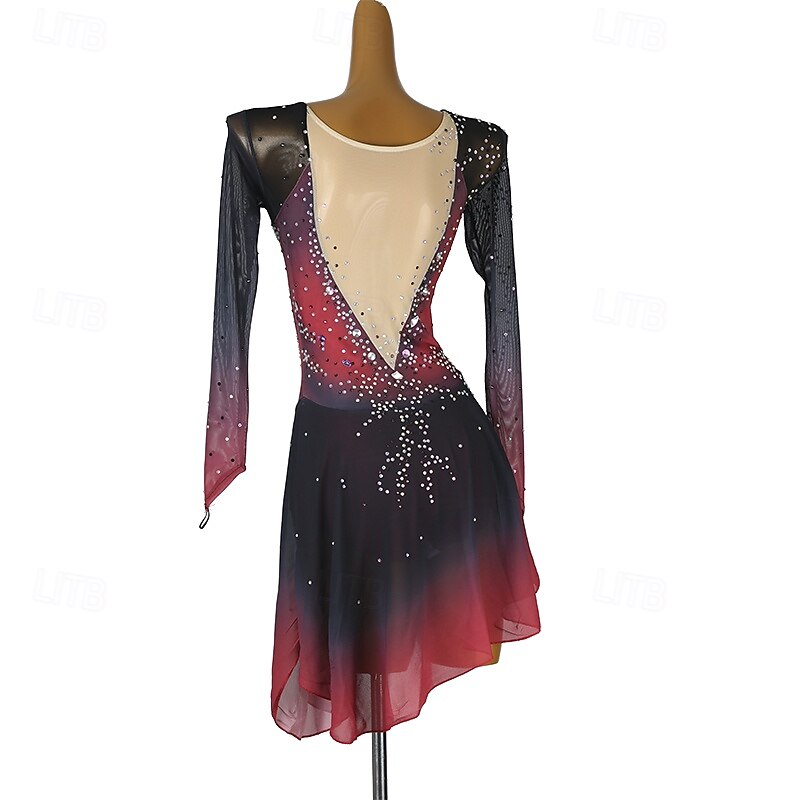 More information about Figure Skating Dress Women's Girls' Ice Skating Dress Black+Red Patchwork Open Back Mesh Spandex High Elasticity Training Practice Professional Skating Wear Classic Crystal / Rhinestone Long Sleeve