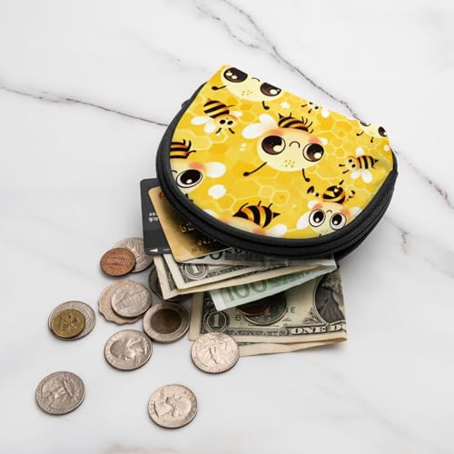 Portable Coin Purse Bee-Honeycomb-Cute Mini Zippered Money Pouch Card Holder 4