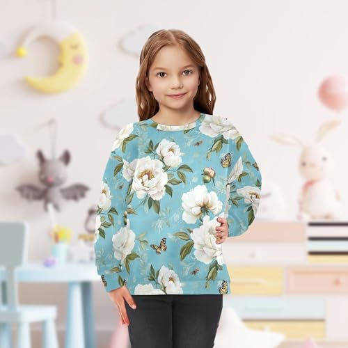JUNZAN Vintage Peony Turquoise Little Girls Sweatshirt Hoodie Long Sleeve Tops Clothing Shirts Party 4T 6
