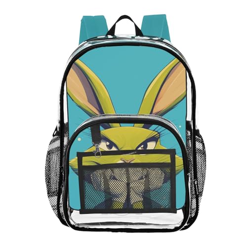 More information about Safari Green Cartoon Asthetic Bunny Backpack For School Clear Clear Book Bag For Girls Transparent Seethrough Heavy Duty For