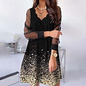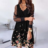 More information about Women's Mini Dress Black Dress Party Dress Casual Dress Cocktail Dress Elegant Fashion Modern Outdoor Party Daily Loose Fit Floral Graphic Long Sleeve V Neck Light Pink Black Yellow Pink Summer