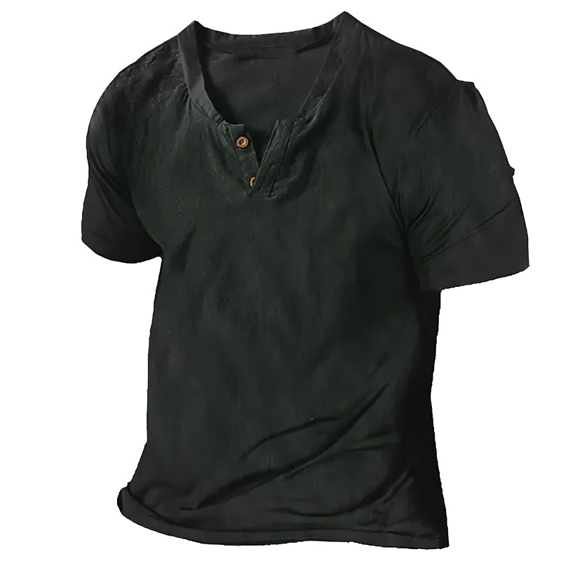 More information about Men's Summer Shirt Casual Shirt Beach Shirt T Shirt Henley Shirt Short Sleeve Plain Fashion Comfortable V Neck Vacation Casual Daily Summer Dark Grey Black White Henley T-Shirt
