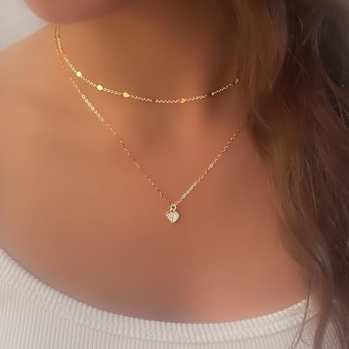HOT ! Annika Bella Gold Necklace Stack, Diamond Heart Necklace, Dot Chain Choker, Cubic-Zirconia Charm Necklaces, Gold Jewelry for Women, Gift for Her, Chokers for Layering