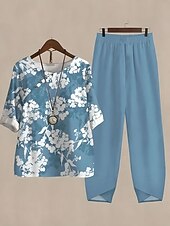 More information about Women's Basic Shirt Pants Sets Half Sleeve Round Neck Floral Graphic Plant Print Outdoor Casual Daily Pink Blue Purple Summer Regular Fit