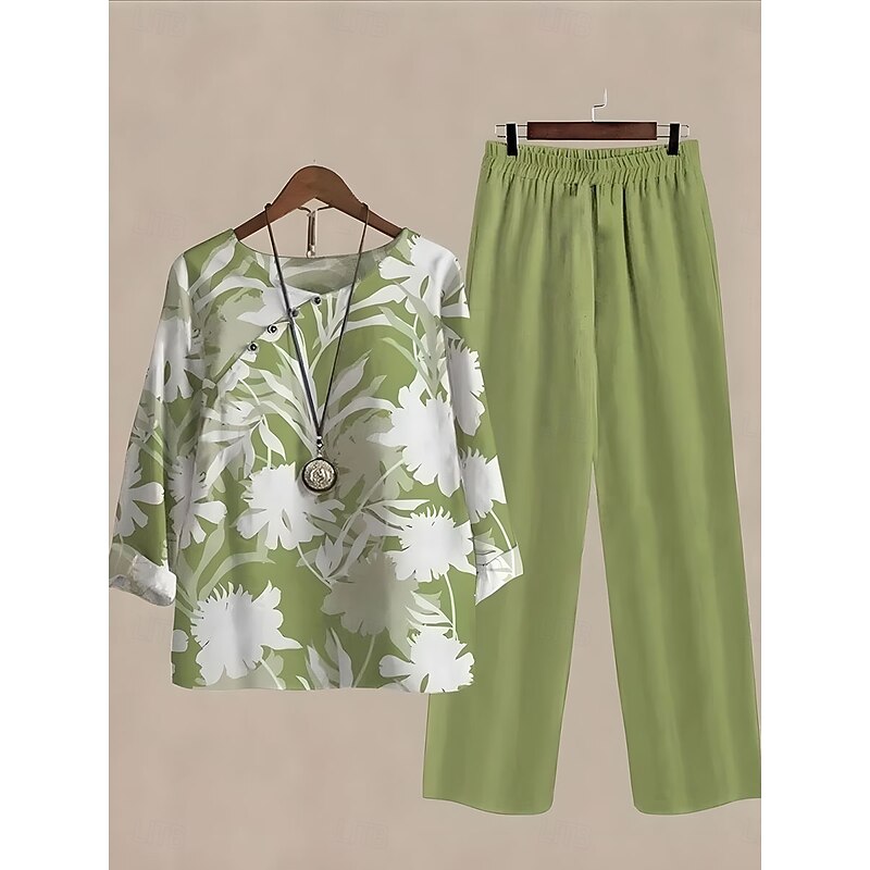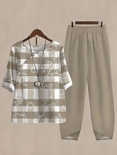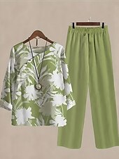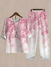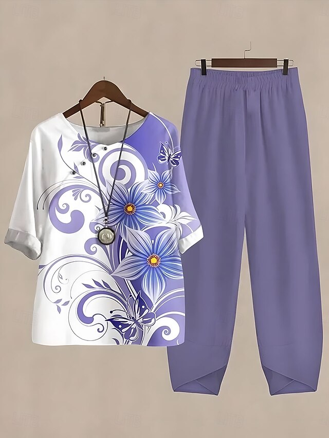 HOT ! Women's Basic Shirt Pants Sets Half Sleeve Round Neck Floral Graphic Plant Print Outdoor Casual Daily Pink Blue Purple Summer Regular Fit