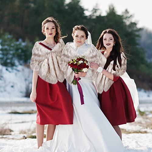 Haysandy 6 Pcs Women's Faux Fur Shawl Wrap Stole Shrug Winter Fur Scarf Cape for Wedding Bridal Evening Party Dress 4