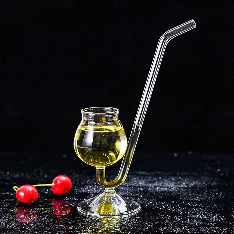 Transparent Glass Pipe Cup – Creative Irregular Champagne Glass, High-Stem Cocktail Cup, Unique Barware for Home, Bar Counter & Cold Drink Shops 2