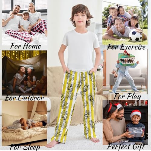 visesunny Boys' Pants Pineapple Yellow Stripe Jogger Pants Elastic Waist Long Bottoms Trousers with Pockets S 4