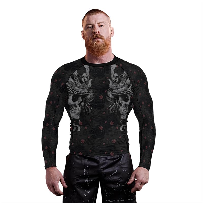 Samurai Men's Long Sleeve Baselayer Skins Performance Fit Compression Rash Guard Grappling MMA BJJ Jiu Jitsu