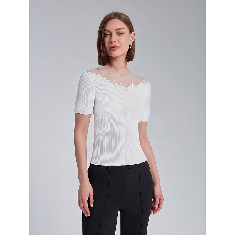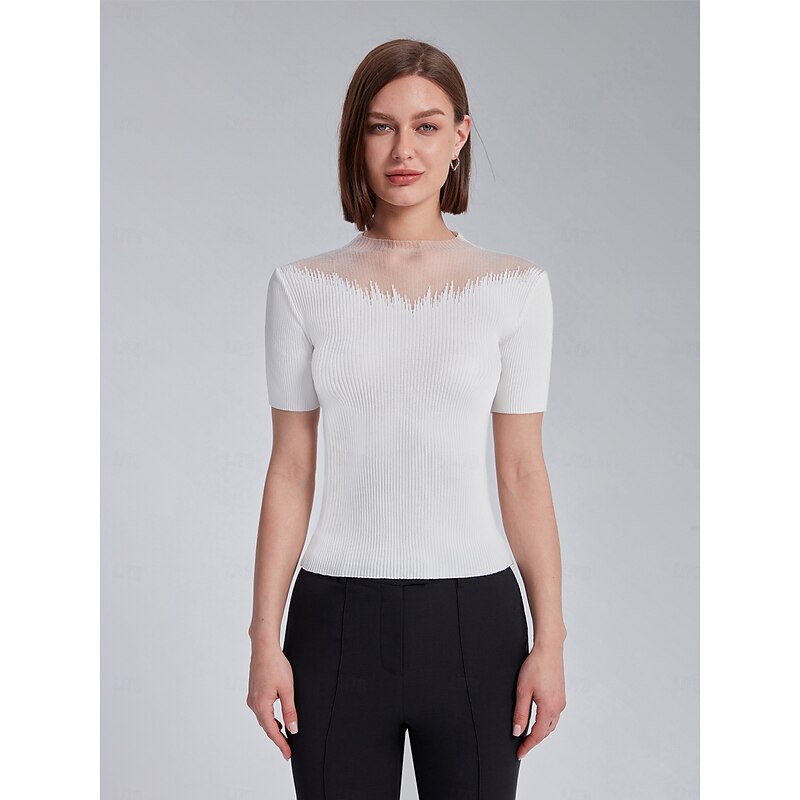 $51.99 - Chiffon See Through Ribbed Knit Top Sheer elegance meets cozy comfort 2025. Shop for cheap Blouses & Shirts online? Buy at lightinthebox.com on sale today!