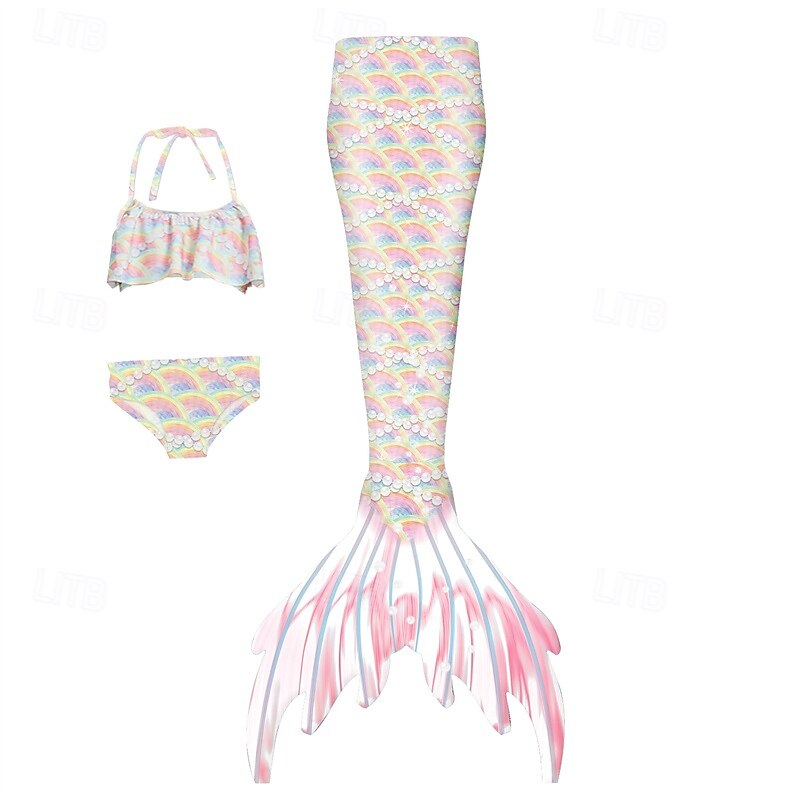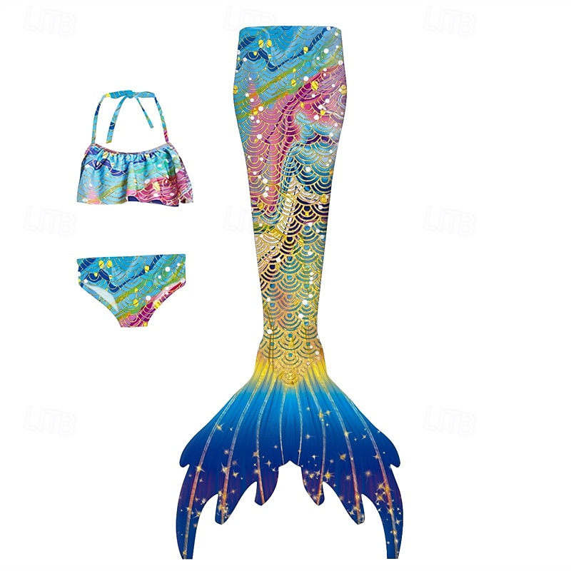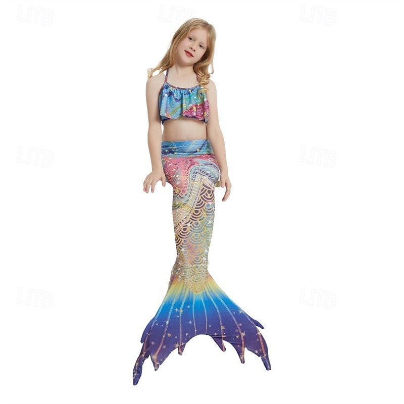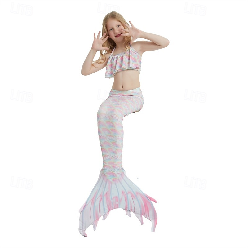 HOT ! Kids Girls' Mermaid Swimwear Swimsuit Holiday Beach Scales Vacation Tropical Bathing Suits 4 years+ Summer White Yellow