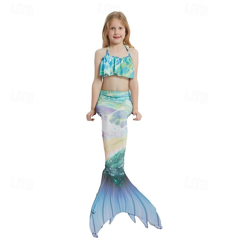 Kids Girls' Mermaid Swimwear Swimsuit Holiday Beach Scales Vacation Tropical Bathing Suits 4 years+ Summer White Yellow 23