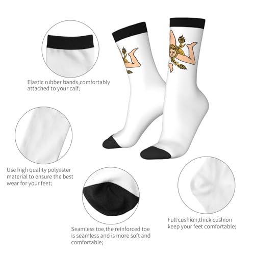 HOT ! Sicily Flag Unisex Cushion Crew Sock Soft Casual Mid-Calf Socks