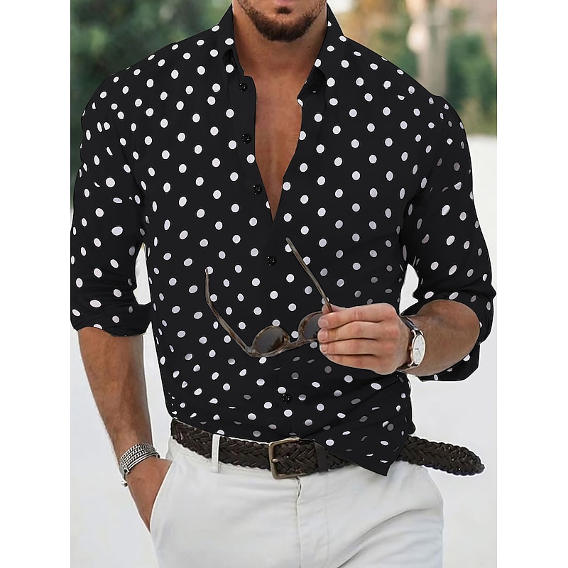 More information about Men's Shirt Summer Shirt Casual Shirt Button Up Shirt Black White Pink Blue Long Sleeve Polka Dot Lapel Vacation Daily Clothing Apparel Fashion Casual Comfortable