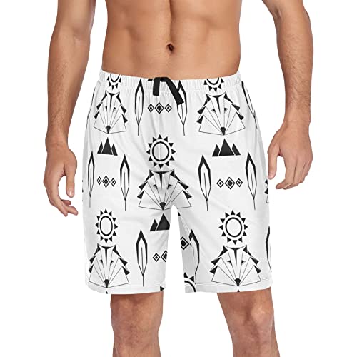 Native American Ethnic Pattern Wolf Feather Mountain Sun Men's Pajama Pants Shorts Sleepwear Lounge Pajama Bottoms 6