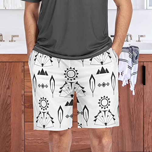 Native American Ethnic Pattern Wolf Feather Mountain Sun Men's Pajama Pants Shorts Sleepwear Lounge Pajama Bottoms 4