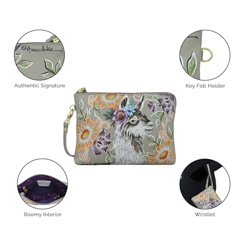 Anuschka Hand Painted Genuine Leather Wristlet Wallet - Crimson Garden 1