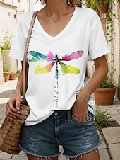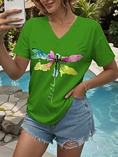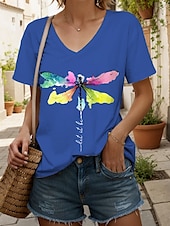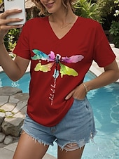 More information about Women's T Shirt Graphic Letter Dragonfly Vintage Stylish Classic Short Sleeve V Neck Regular Tops Daily Print White Red Blue Purple Green Summer Spring