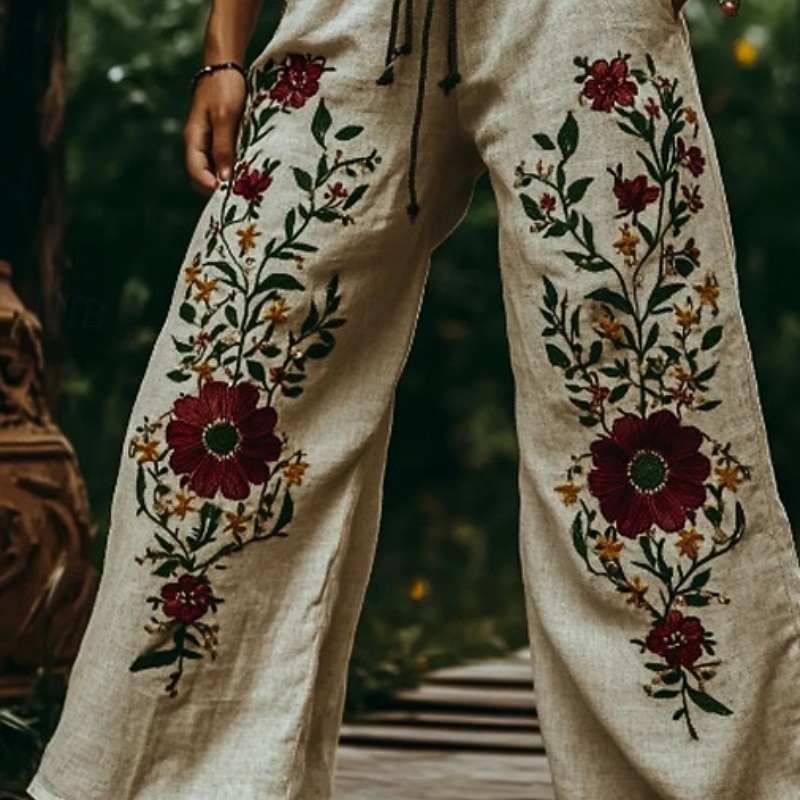 More information about Women's Slacks Casual Boho Full Length Natural Flower Pocket Elastic Waist Printing Comfy Outdoor Comfortable Daily Wear Going out Beige Summer Regular Fit