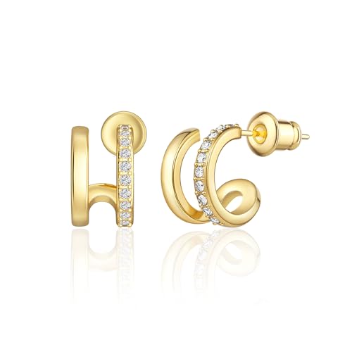 Risamilo Gold Earrings for Women Dainty Cubic Zirconia Studs Small Hoops Lightweight Trendy Jewelry Gift 1
