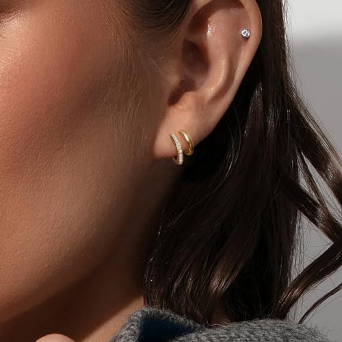 Risamilo Gold Earrings for Women Dainty Cubic Zirconia Studs Small Hoops Lightweight Trendy Jewelry Gift 4