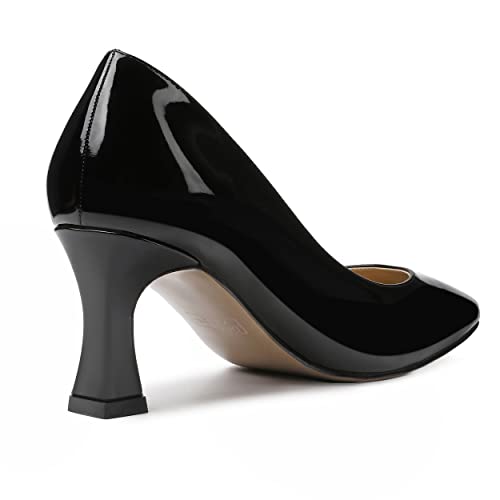 SKYSTERRY Women's Patent Office Solid Dress Slip On Square Toe Spool Mid Heel Pumps Shoes 2.5 Inch 5