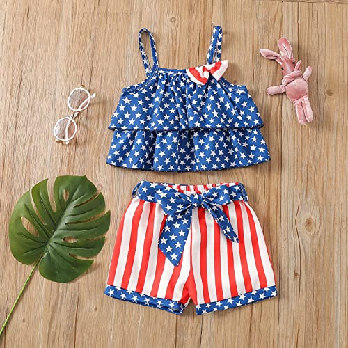 Little Girls Independence Day USA Outfits Toddler Kids 4 of July Ruffle Tank Tops Bow Shorts Baby Boys American Flag Set 2