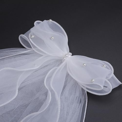 Bow Pearl Bride Veil Pearl +Lotus leaf gloves Set Wedding Bridal Veil/Bride/Bachelorette Party Veil for Women and Brides Hairpin 6