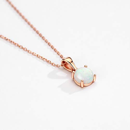 Michooyel Opal Pendant Necklace Sterling Silver 4 Prongs Setting Solitaire Fine Jewelry for Women 18K Rose Gold Blue Green Opal
