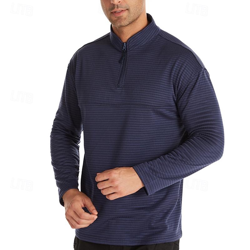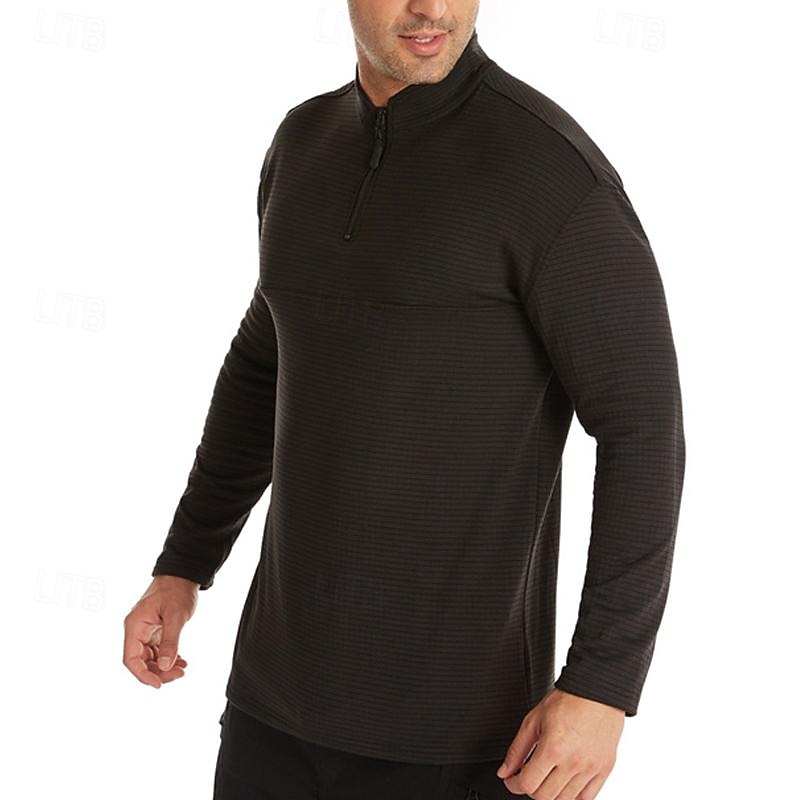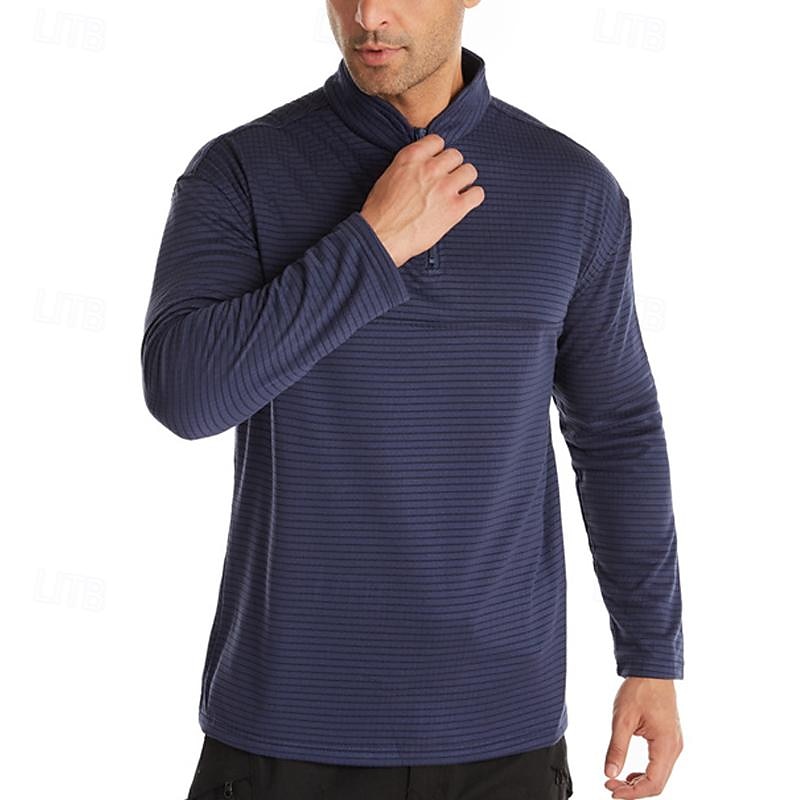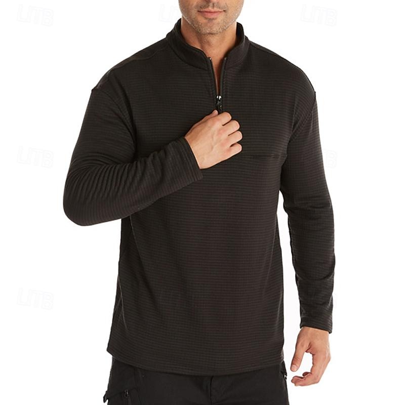 Men's Base Layer Quarter Zip Long Sleeve Jersey Casual Athleisure Fall Solid Colored Polar Fleece Thermal Warm Gym Workout Walking Jogging Sportswear Activewear Black Navy Blue Khaki 24