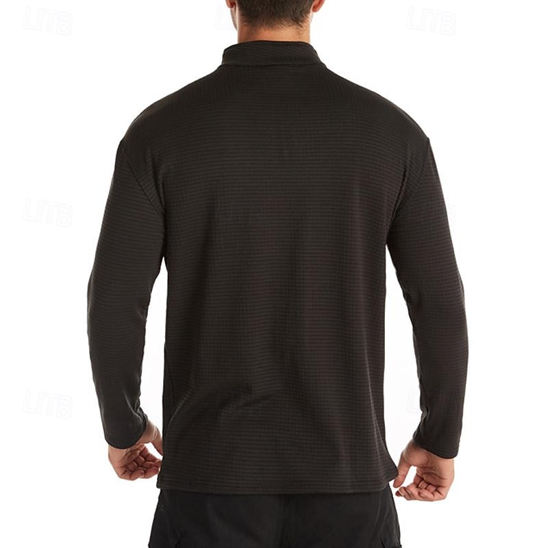 Men's Base Layer Quarter Zip Long Sleeve Jersey Casual Athleisure Fall Solid Colored Polar Fleece Thermal Warm Gym Workout Walking Jogging Sportswear Activewear Black Navy Blue Khaki 3