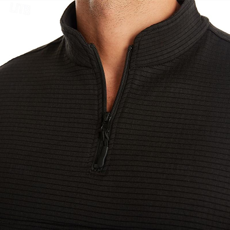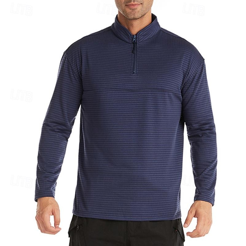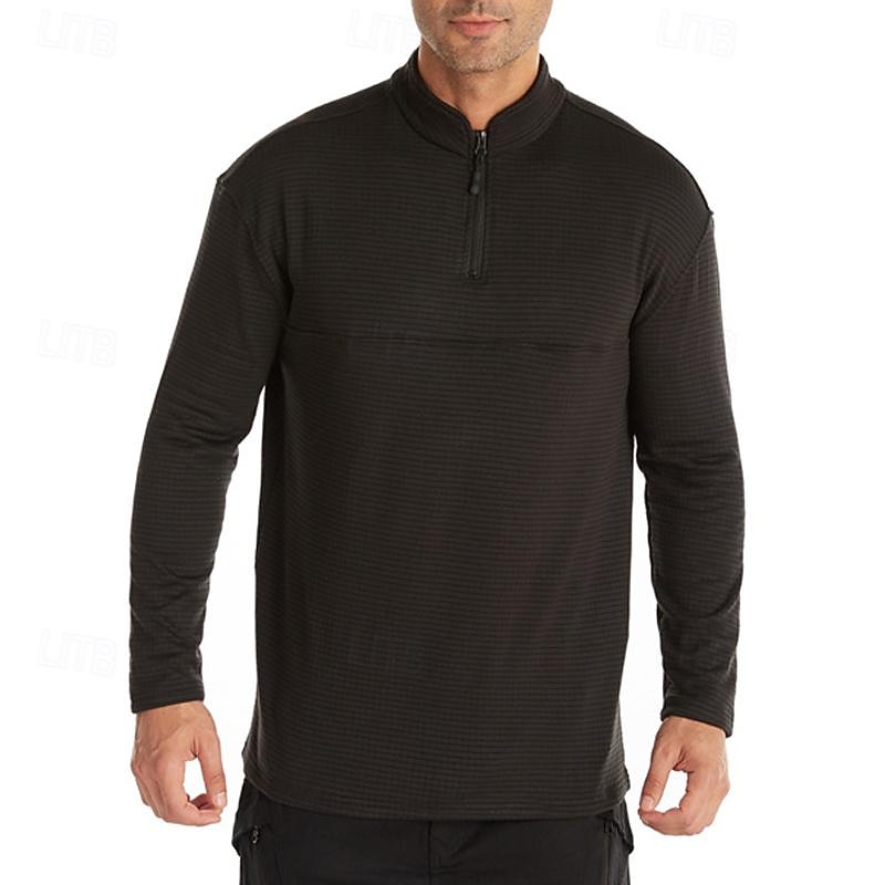 Men's Base Layer Quarter Zip Long Sleeve Jersey Casual Athleisure Fall Solid Colored Polar Fleece Thermal Warm Gym Workout Walking Jogging Sportswear Activewear Black Navy Blue Khaki 9