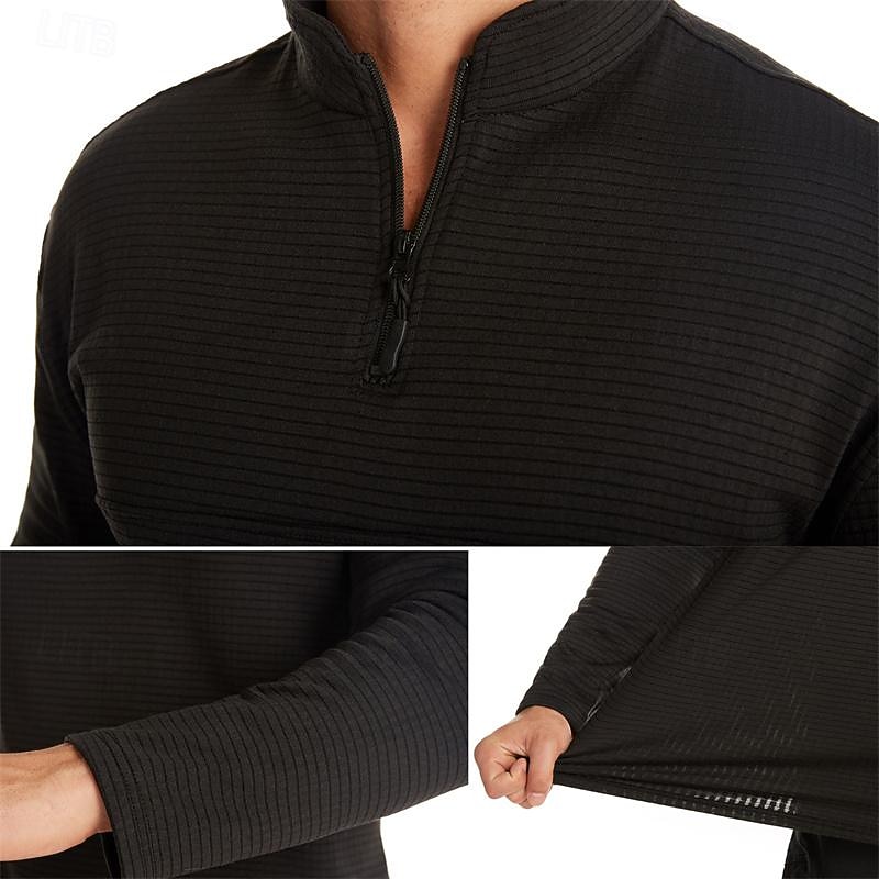 Men's Base Layer Quarter Zip Long Sleeve Jersey Casual Athleisure Fall Solid Colored Polar Fleece Thermal Warm Gym Workout Walking Jogging Sportswear Activewear Black Navy Blue Khaki 10