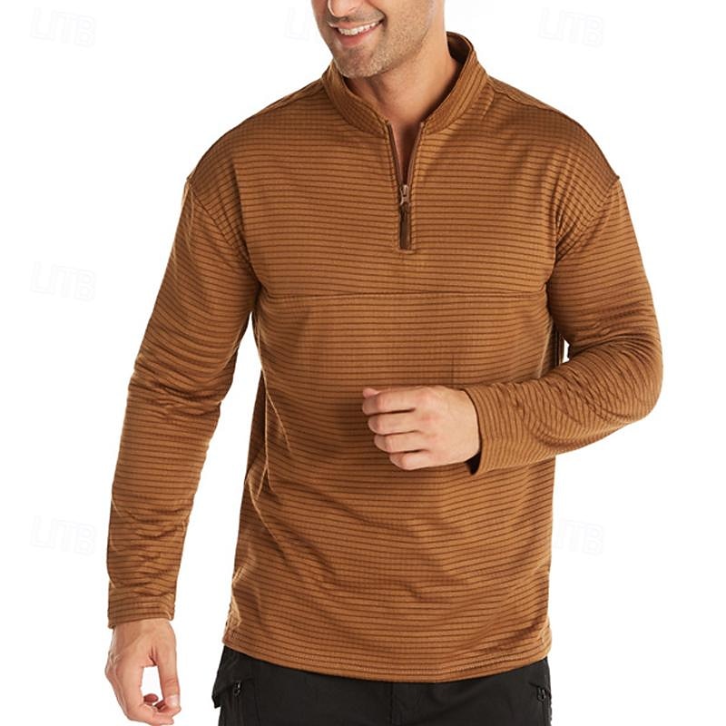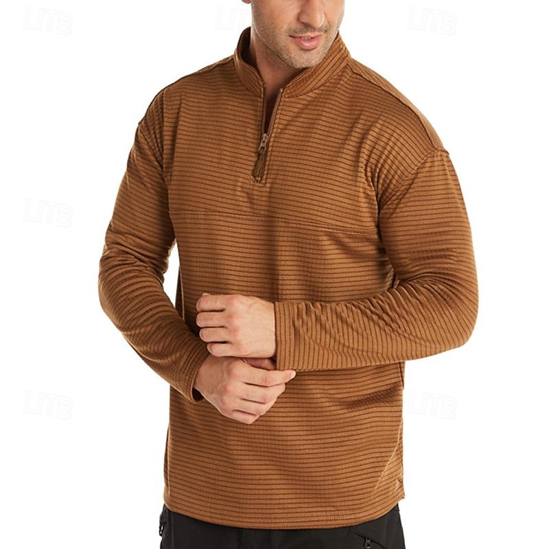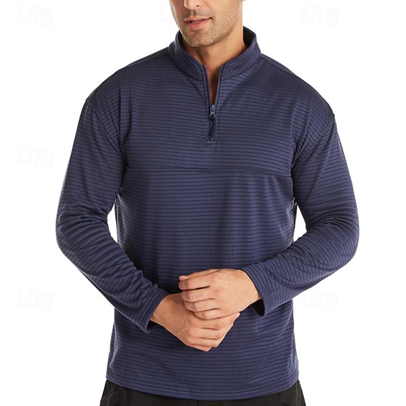 Men's Base Layer Quarter Zip Long Sleeve Jersey Casual Athleisure Fall Solid Colored Polar Fleece Thermal Warm Gym Workout Walking Jogging Sportswear Activewear Black Navy Blue Khaki 7